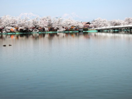 池を囲むようにさくらが咲いているが、規模、枝振り、湖面や背景(山並み)とのコントラストなど、これというものが無いような気がした。もちろん見事な桜並木であることに間違いはない。